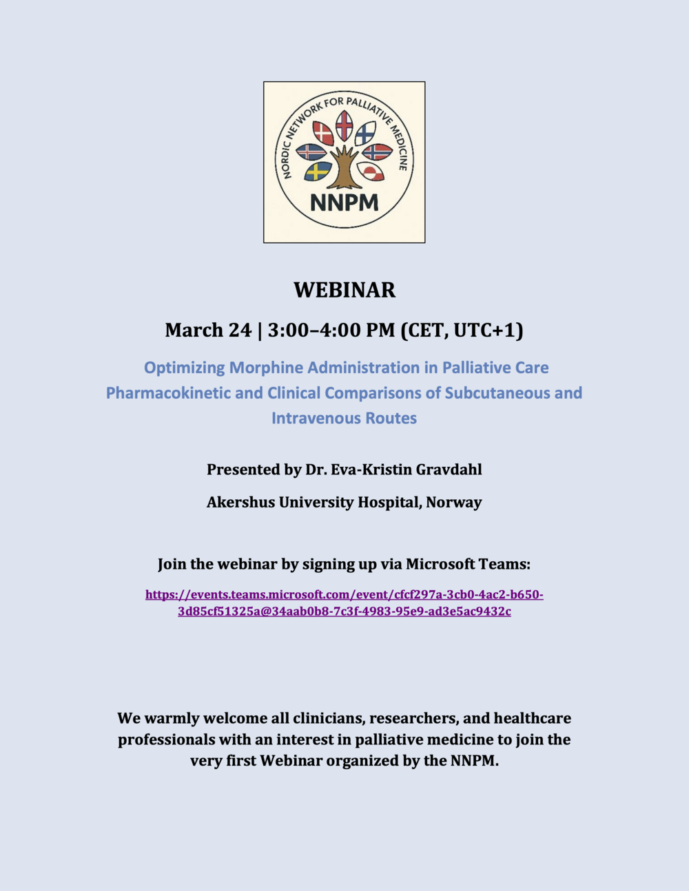 Nordic Network for Palliative Medicine - Invitation to webinar March 24th: Optimizing Morphine Administration in Palliative Care – Pharmacokinetic and Clinical Comparisons of Subcutaneous and Intravenous Routes